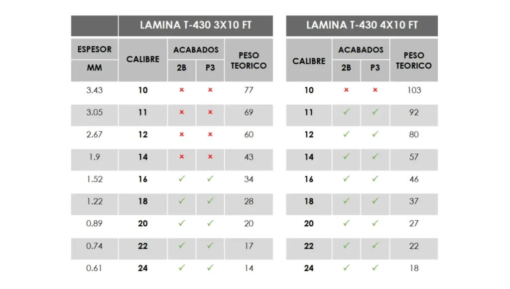 Tabla de Dimensiones